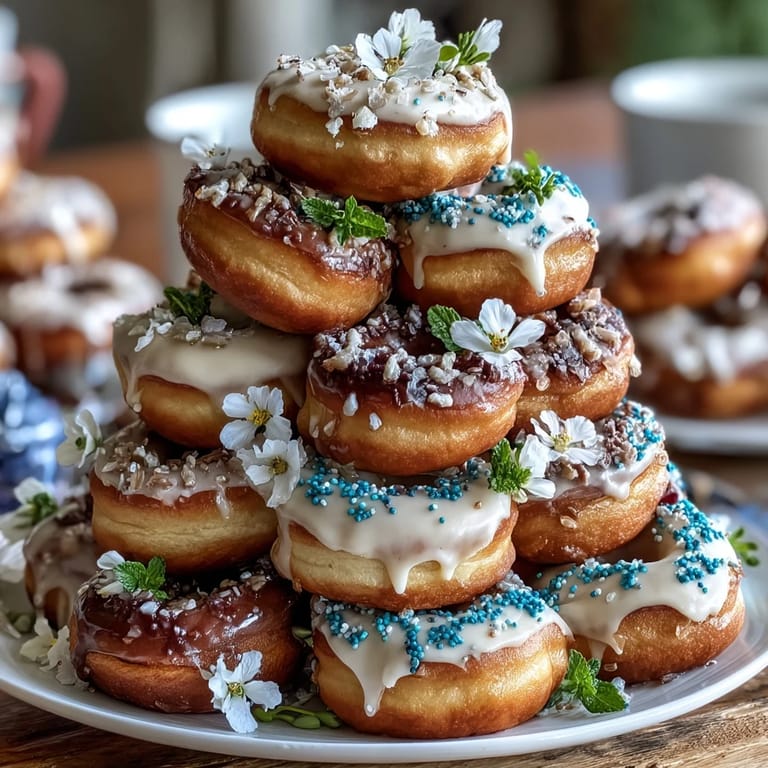 Save to Pinterest The Baby in Bloom Mini Donut Tower with Flowers is a delightful and whimsical dessert centerpiece that brings a fresh burst of springtime charm to any baby shower or festive gathering. Tiers of mini donuts are stacked elegantly in a tower, then artfully adorned with fresh edible flowers and pastel sprinkles, creating a blooming display that looks as joyful as it tastes. This easy-to-make treat requires no baking if you start with pre-made mini donuts, offering a quick and fun way to impress your guests with a playful centerpiece that’s both beautiful and delicious.