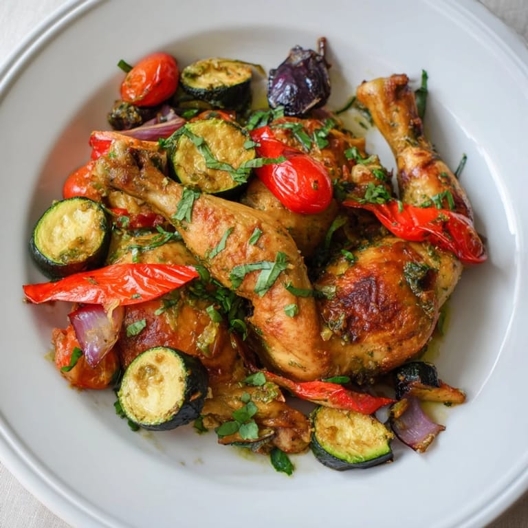 Swap zucchini for asparagus or green beans if desired Substitute boneless chicken thighs for extra juiciness add 5 minutes to baking time Serve with crusty bread or over cooked rice or quinoa for a heartier meal Pair with a crisp Sauvignon Blanc or Pinot Grigio.