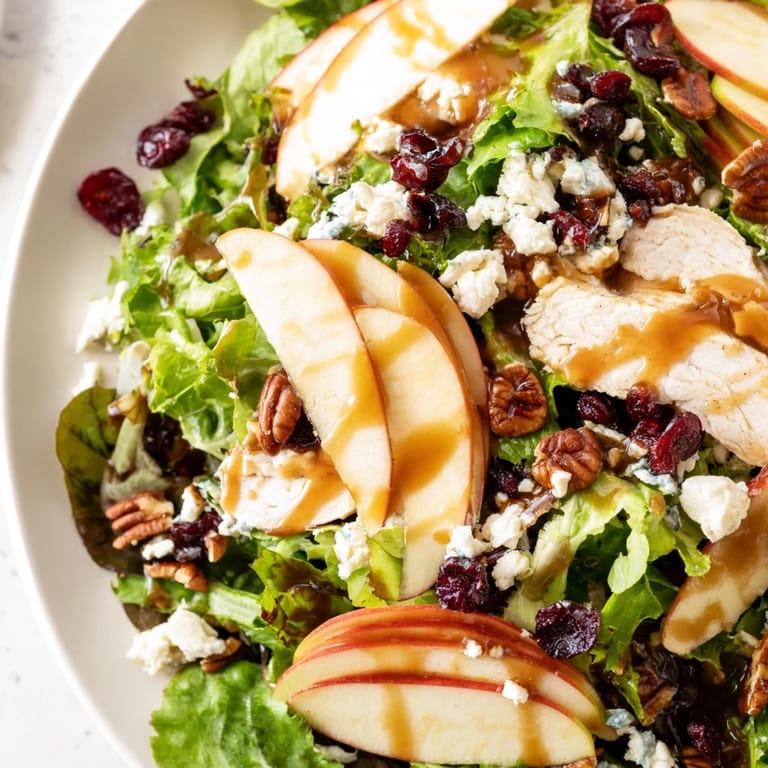 Save to Pinterest My neighbor brought over a version of this salad after a long Saturday of raking leaves, and I stood in my driveway with a fork, completely mesmerized by how caramel could belong on greens. The sweetness didn't fight the chicken or the sharpness of the cheese, it just made everything taste more alive. I went inside and immediately started recreating it, scribbling notes on a grocery receipt. That dressing, with its maple warmth and nutty crunch, became something I make every fall without fail. It's the kind of dish that makes you wonder why you ever thought salad had to be boring.