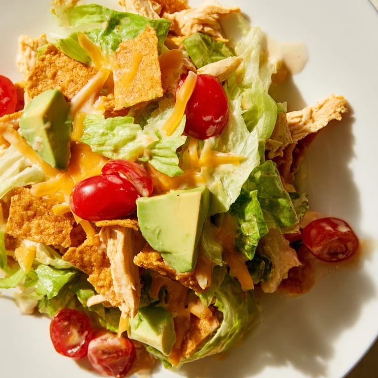 Save to Pinterest There was this night after soccer practice when I needed dinner fast but wanted something that felt like a celebration, not a chore. I had leftover taco shells that were too few for a full taco night, and suddenly the idea hit: crush them over a salad. The crunch against the creamy dressing and juicy chicken made everyone at the table pause mid-bite. It became our go-to when we wanted something lively without the fuss.