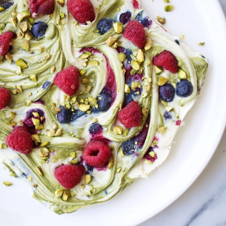 Save to Pinterest Last summer, I was standing in my kitchen on one of those days when the heat made thinking feel impossible, and I realized I had Greek yogurt, a container of matcha powder I'd been meaning to use, and a handful of berries going soft on the counter. Instead of letting them disappear, I spread the yogurt on a sheet, swirled in some color, and froze it. What came out was nothing short of magic—this crackly, creamy bark that tasted like a healthier dessert but felt like a treat.