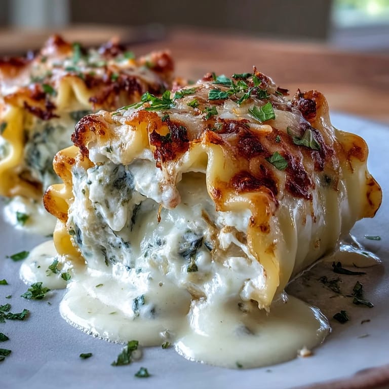 Save to Pinterest My sister called one Tuesday evening asking if I could bring dinner to her place, and I found myself standing in my kitchen with a block of ricotta and a handful of fresh spinach, wondering how to make something that felt special without the usual lasagna assembly line. That's when I remembered watching someone carefully roll up noodles instead of layering them, and how it suddenly made sense—each roll was its own little package of creamy, garlicky goodness. The garlic butter sauce came to me as an afterthought, something to cradle these rolls in richness, and the whole thing came together in under an hour. Her kids actually asked for seconds, which in my experience means you've done something right.
