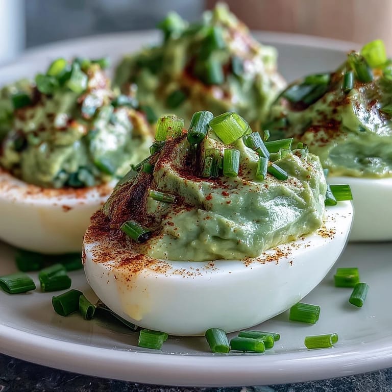 Save to Pinterest My coworker brought these to our office potluck, and I'll admit I almost passed them by—until I saw that gorgeous green color peeking out from under the paprika. One bite and I was hooked. The creamy avocado filling was nothing like the mustard-heavy deviled eggs I'd grown up with, and somehow they felt both indulgent and refreshingly light at the same time. Now whenever I need something that looks impressive but doesn't require fussing, these are my go-to.