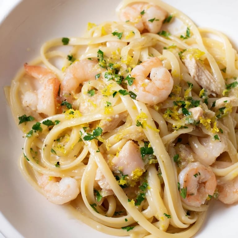 Save to Pinterest There was a Thursday evening when I had shrimp thawing and chicken already out, and I stood there wondering why I had to choose. The lemon on the counter caught the last bit of sunlight through the window, and I thought, why not both? That's how this pasta was born—not from a plan, but from refusing to pick a favorite. It turned into one of those meals where everyone went quiet after the first bite, and I knew I'd be making it again and again.