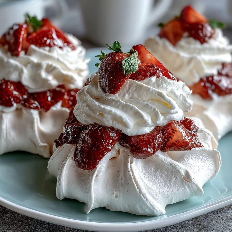 Save to Pinterest There's something almost magical about watching egg whites transform into billowy clouds under a mixer's whisk. I discovered pavlovas by accident one spring afternoon when a friend arrived with strawberries from the farmers market and I had nothing but eggs and sugar in the pantry. What emerged from that improvisation was these delicate, crispy-yet-creamy nests that somehow made everyone at the table pause mid-conversation. They're the kind of dessert that feels fancy but won't betray you in the kitchen, as long as you respect one simple rule: patience.