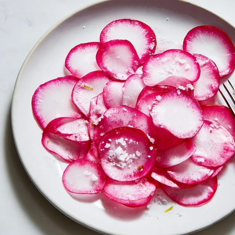 Save to Pinterest A crisp, refreshing snack featuring peppery radishes simply enhanced with flaky sea saltβperfect for a light appetizer or a healthy nibble.
