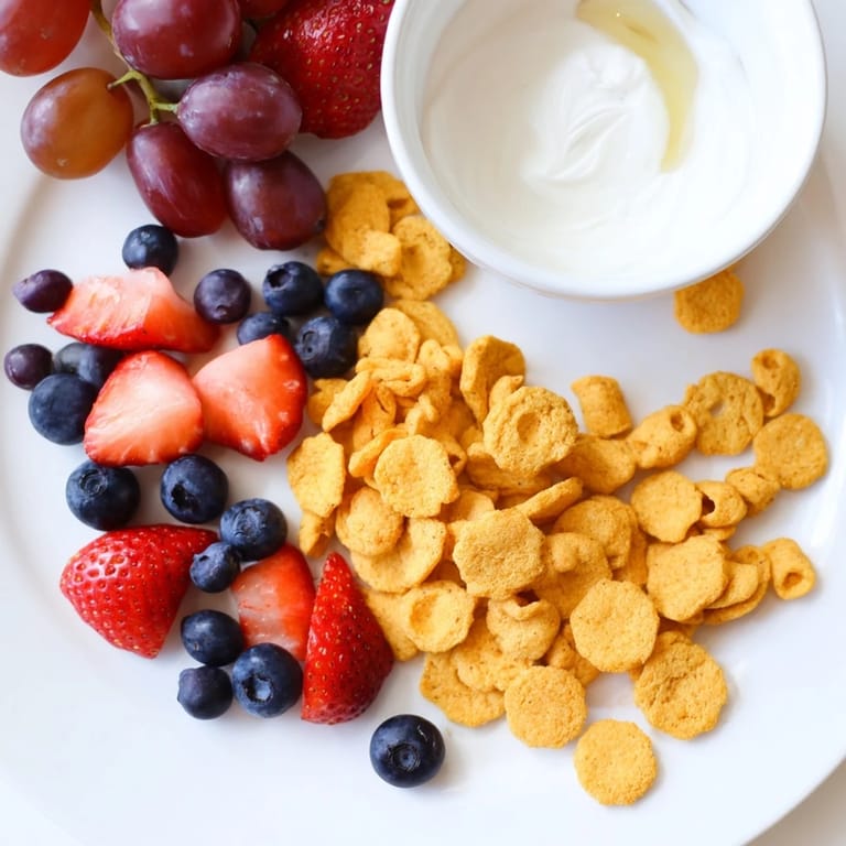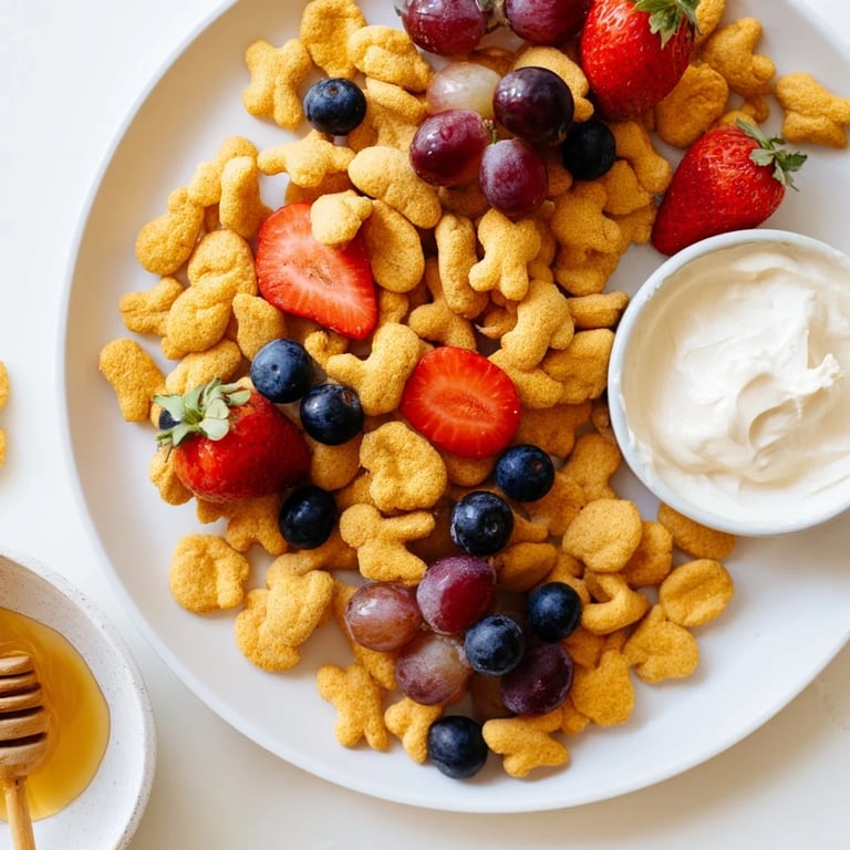 Save to Pinterest A fun, colorful, and crunchy kid-friendly snack pile featuring rainbow Goldfish crackers, fresh fruit, and creamy yogurt dip—perfect for playdates or after-school treats.