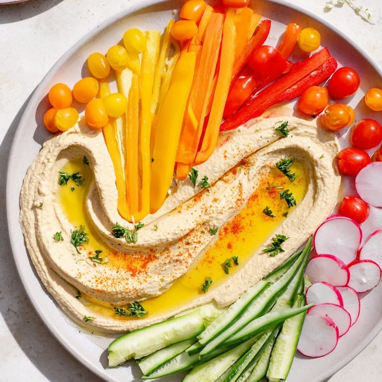 The secret to mastering this dish is understanding that you're not just arranging vegetables—you're creating a conversation between colors, textures, and flavors. Think about which vegetables complement each other not just visually but in taste. Consider how the sweetness of carrots plays against the pepperiness of radishes, how the freshness of cucumber balances the earthiness of hummus. Once you see the platter as a composition rather than a checklist, you'll find yourself making creative choices that feel intuitive and personal.