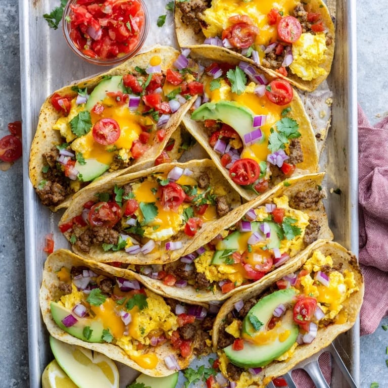 Save to Pinterest The first time I made sheet pan breakfast tacos was for a chaotic Saturday morning when my sister's family unexpectedly stayed over. With six hungry people and limited counter space, I needed something efficient that wouldn't have me flipping individual eggs or babysitting a skillet. The genius of baking everything together on one pan felt like discovering a secret breakfast hack. That morning, watching everyone customize their tacos with different toppings became an impromptu family gathering around the kitchen island.