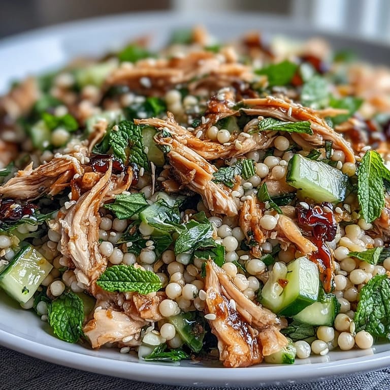 The couscous provides the body and substance, the chicken brings protein and staying power, and the vegetables add freshness and fiber. The sesame dressing ties everything together with enough richness that you don't feel like you're eating something light—it actually feels indulgent despite being nutritionally balanced. This is why it works as a main course rather than a side, and why people don't need to hunt for something else to round out their plate.