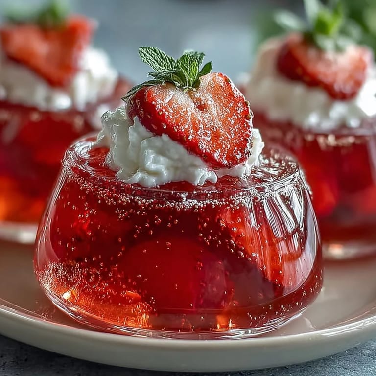 Save to Pinterest What makes these jello shots truly special is the harmony between the delicate floral notes of champagne and the bright, summery sweetness of ripe strawberries. The gelatin binds them together into a silky, jewel-toned treat that shimmers in the light. Topped with a cloud of whipped cream and a dusting of edible glitter or gold sprinkles, each shot becomes a tiny celebration in itself. This recipe yields 18 shots — just the right amount for a cozy gathering — and comes together in just 15 minutes of active prep time. The hardest part? Waiting the 3 hours for them to set!