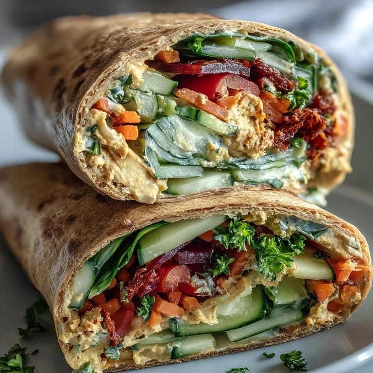 Save to Pinterest The combination of creamy hummus with the tanginess of sun-dried tomatoes creates a spread that's far more exciting than traditional hummus. Each bite offers a perfect balance of textures—from the smooth spread to the crunch of fresh vegetables. These wraps are not just a meal; they're a portable nutrition powerhouse that will keep you energized throughout your day.