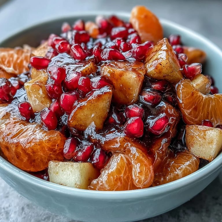 Save to Pinterest My sister called me three days before Christmas asking if I could bring a fruit salad to her open house, and I almost said no—too predictable, too boring. But then I remembered standing in her kitchen the previous winter, watching her spoon something warm and fragrant over fresh fruit, and how everyone kept coming back for more. That's when I realized a good fruit salad isn't about throwing things in a bowl; it's about the dressing that makes people pause mid-conversation and ask what you did differently. This one, with its cinnamon-spiced vanilla syrup, became the dish I make when I want to feel like I actually tried.